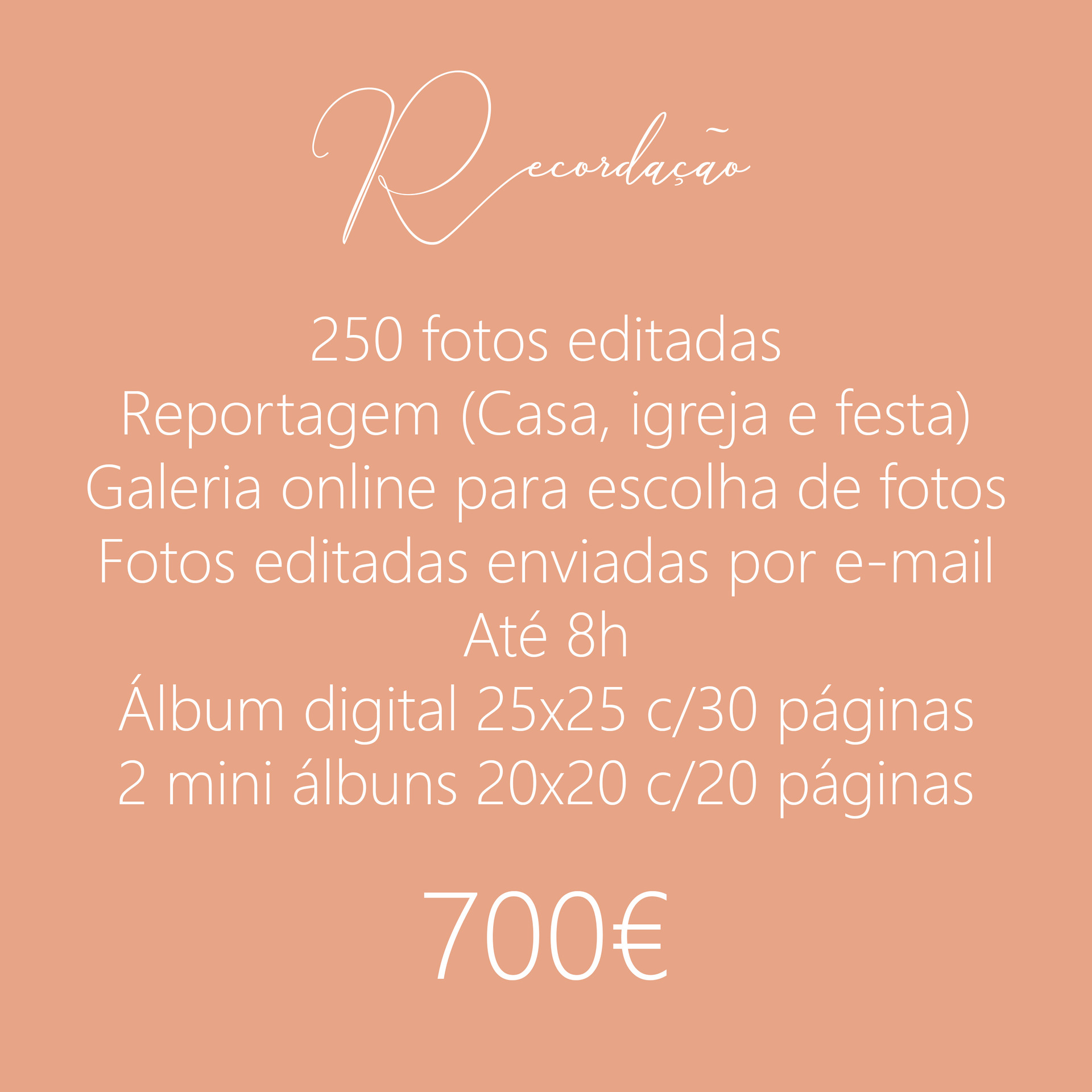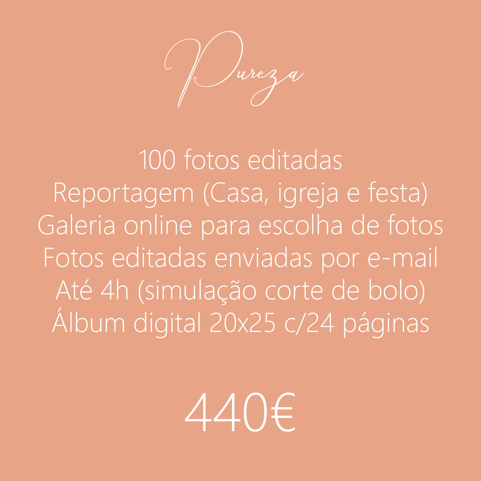 Temos disponíveis diversos packs, desde o mais básico, pack pureza até ao mais completo, pack recordação. Em todos eles damos o nosso melhor para que possam levar para casa a melhor das recordações.