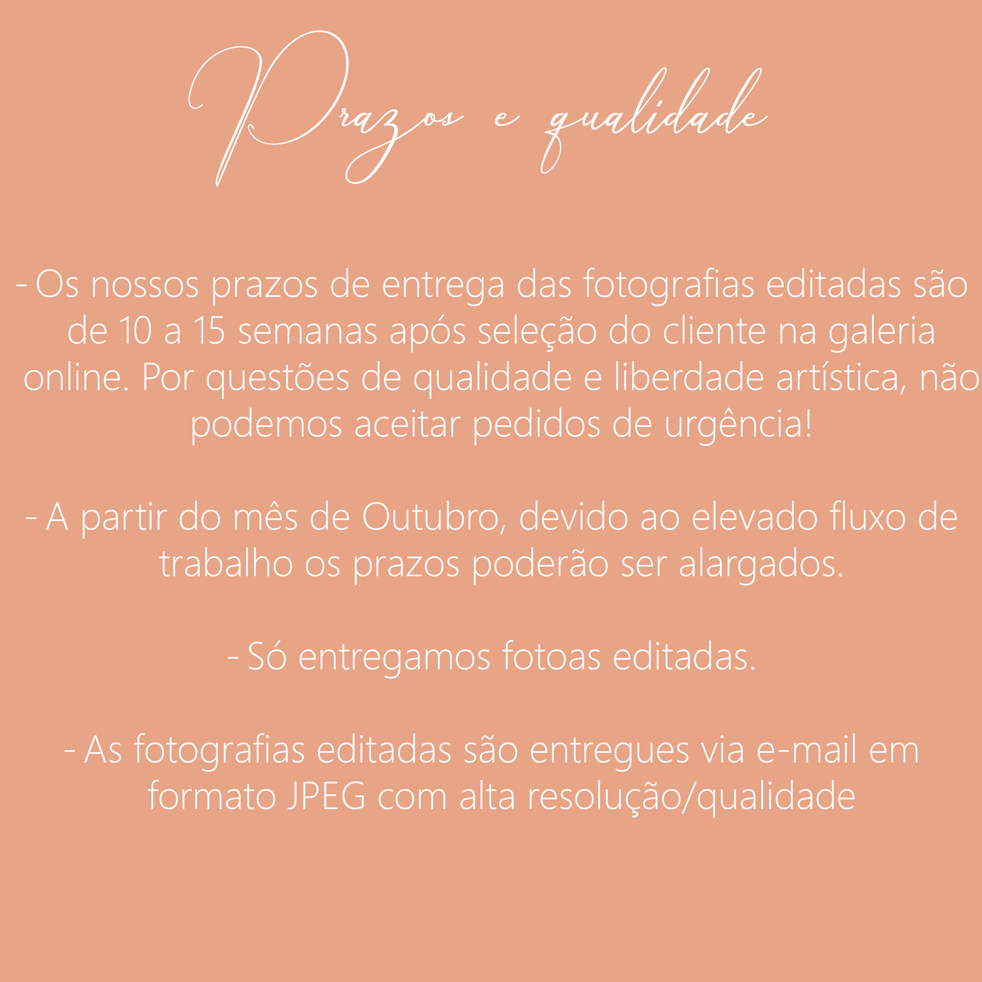 É muito importante ler esta parte, tirará assim todas as dúvidas existentes em relação a pagamentos, remarcações e prazos de entrega.